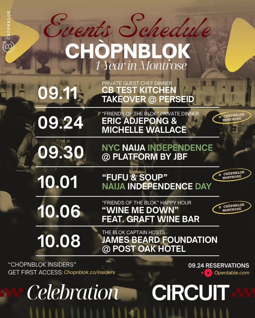 Join us as we mark an extraordinary year of sharing West African flavors and culture in the heart of Houston! We’ve got an exciting “Celebration Circuit” of events to toast this milestone both at our Montrose location and other spots around town (plus a special dinner in NYC)!